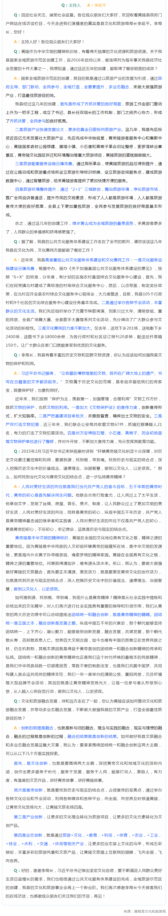 在线访谈:黄陵县文化和旅游局局长李延平(视频)