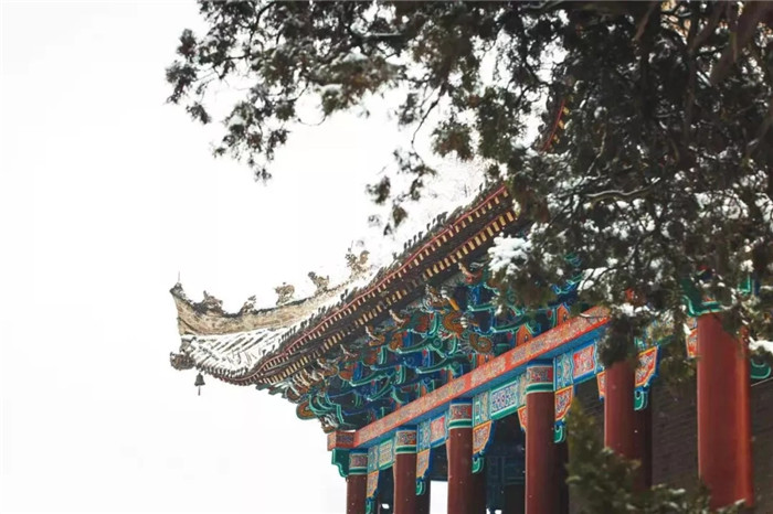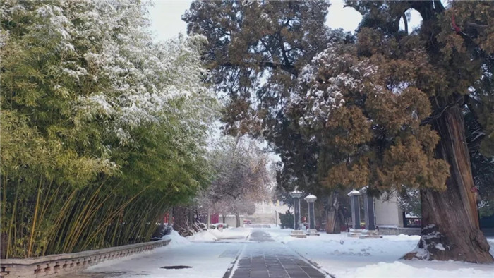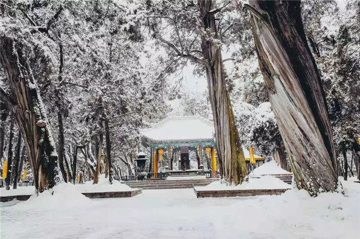 整个庙院只见玉树琼花 瑰丽神奇正应了“苍松结玉蕊,柏树挂银花”的诗句