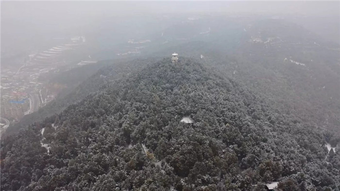 登上山顶大地静谧而安祥就像一个在母亲怀里熟睡的婴儿等待着苏醒好一派“窗含西岭千秋雪”的景象