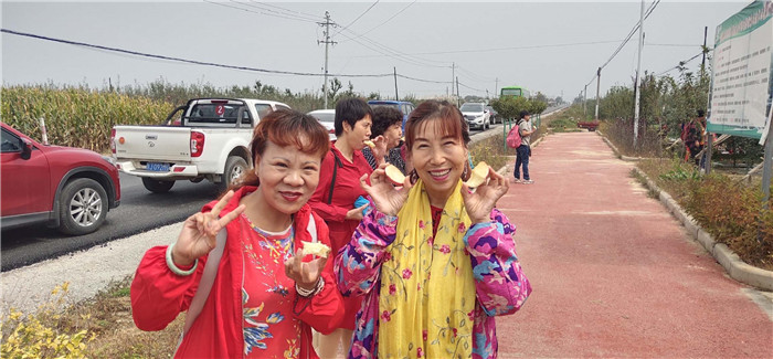 脆甜可口的红富士,皮薄汁多的黄陵翡翠梨,甘甜的金银花茶让前来考察踩点的旅行社代表赞不绝口。