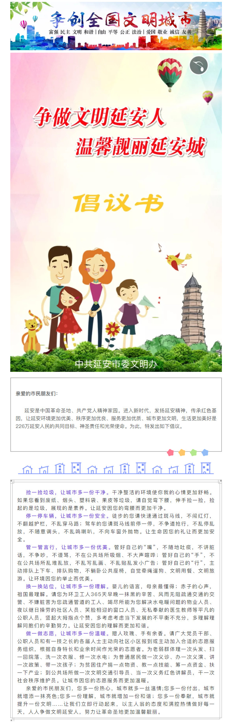 “争做文明延安人 温馨靓丽延安城”倡议书