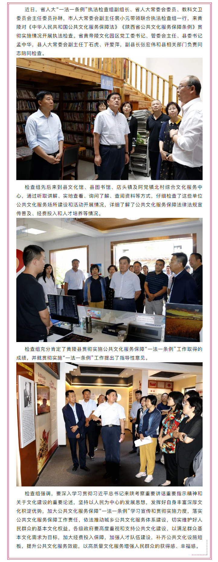 省市人大联合执法检查组来黄陵开展公共文化服务保障“一法一条例”执法检查