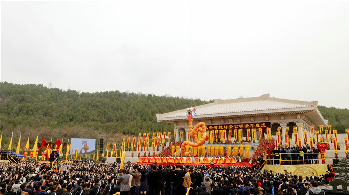 中华始祖堂讲解员 张苗:欢迎大家来到国家AAA级景区中华始祖堂,了解源远流长的黄帝文化和中华文化。“中华开国五千年,神州轩辕自古传。”步入中华始祖堂,就请各位和我一起走进“人文初祖”黄帝的传奇一生。