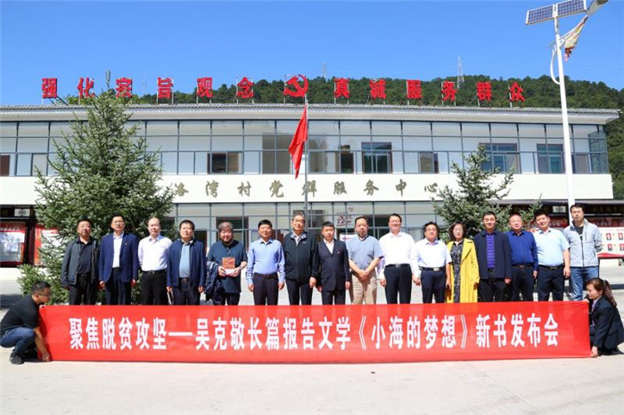 9月18日,陕西省作协副主席、西安市作协主席吴克敬创作的长篇报告文学《小海的梦想》新书发布会在黄陵县双龙镇索洛湾村举行。省作协秘书长王晓渭,市委常委、宣传部部长柯昌万,省黄帝陵文化园区党工委书记、管委会主任、县委书记孟中华,陕西师范大学出版总社董事长兼社长刘东风,市委宣传部副部长党晓明,市作协党组书记霍爱英,市作协党组成员刘勇,县委常委秦延辉,文学评论家、《光明日报》陕西记者站站长张哲浩,文学评论家 、《西安晚报》副刊主编高亚平,文学评论家、《小说评论》主编王春林及相关部门镇办负责人出席活动。