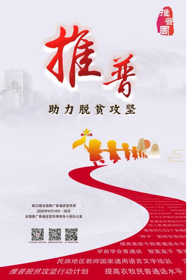 经国务院批准,每年9月第三周为全国推广普通话宣传周。今年第23届全国推普周定于2020年9月14日至20日举行,主题为“同讲普通话 携手进小康”。