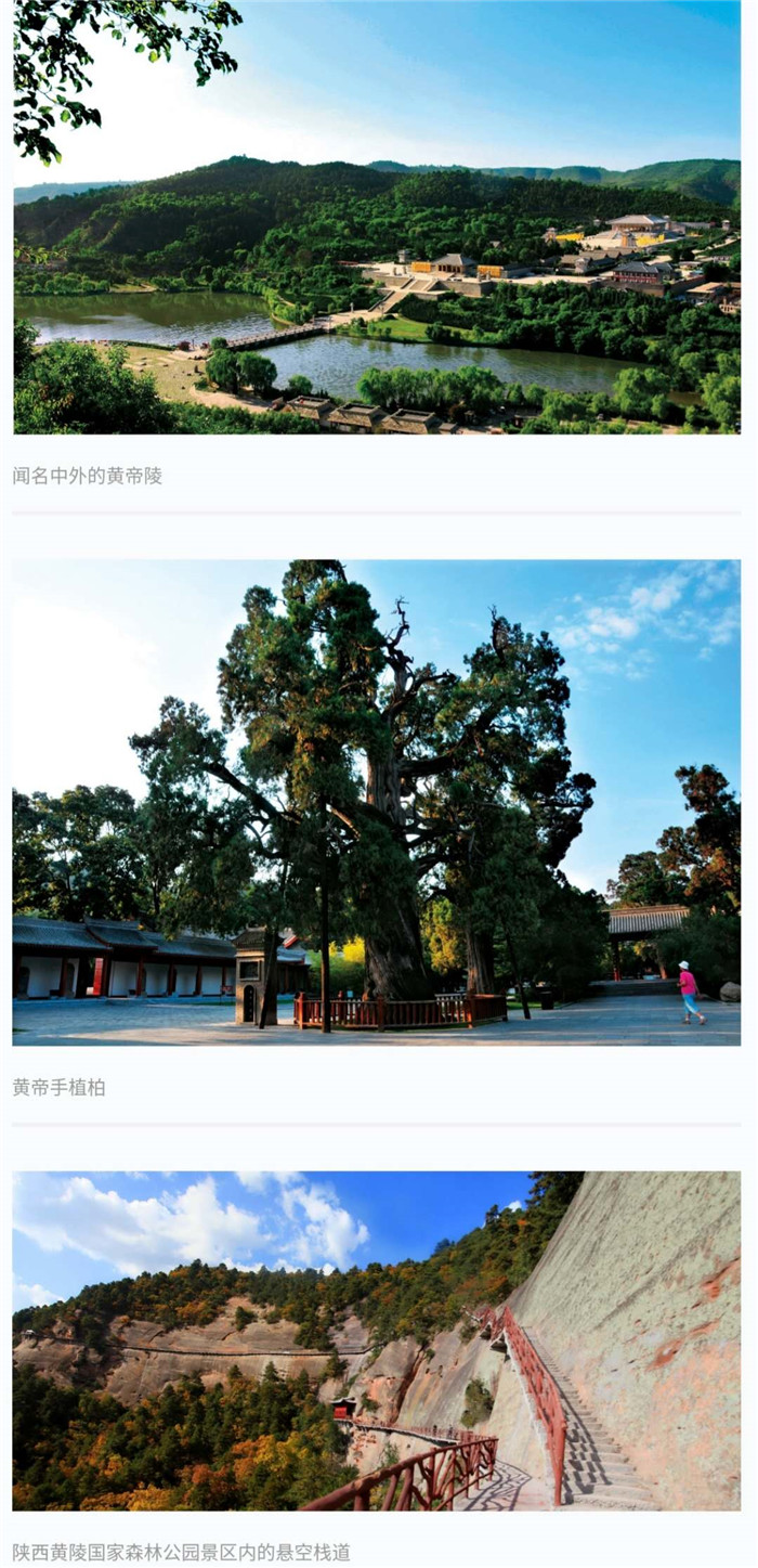 黄陵是中华民族圣地,位于陕西省中部、延安市南端,总面积2292平方公里,总人口13万。该县区位优势明显,地处陕北能源重化工区和关中高新技术产业开发区交汇地带,包茂高速、包茂高速第二通道、西延铁路穿境而过,210国道、秦七铁路横贯县境,西延动车黄陵站建成通车,距西安165公里,距延安124公里。县域自然条件良好,地肥水丰,光照充足,属世界优质苹果最佳适生区;生态环境优美,沮河、葫芦河径流地表,森林覆盖率达75%以上,是“中国深呼吸小城100佳”;人文景观独特,境内黄帝陵是中华文明的精神标识,是国家重点风景名胜区、全国文明风景旅游区、全国爱国主义教育基地、国家首批5A级旅游景区、中国民间文化遗产旅游示范区和西北地区首家海峡两岸交流基地。县境内还有国家4A级景区黄陵国家森林公园、3A级景区万安禅院以及秦直道、紫峨寺、子午岭、中华始祖堂等历史文化遗址和自然景观。