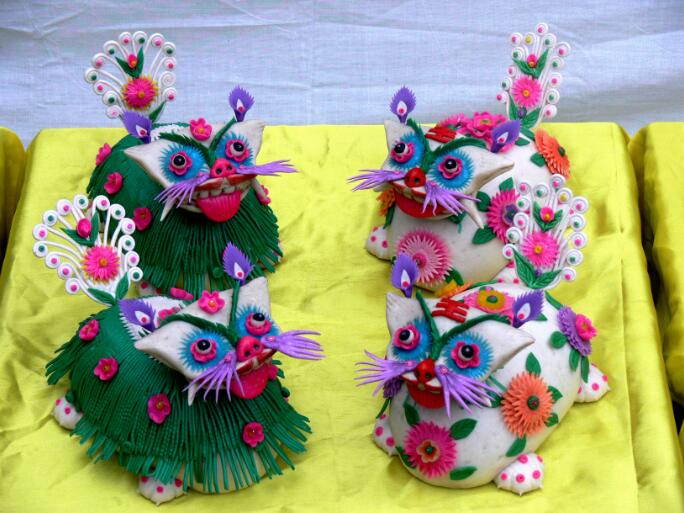 黄陵面花制作工艺精巧,作工流程复杂,工序繁多,制作出的面花栩栩如生、活灵活现、赏心悦目,具有极强的艺术感染力,他折射出黄陵作为轩辕黄帝故里深厚的历史文化底蕴和黄陵民俗文化历史悠远、丰富多彩的总特征。 |