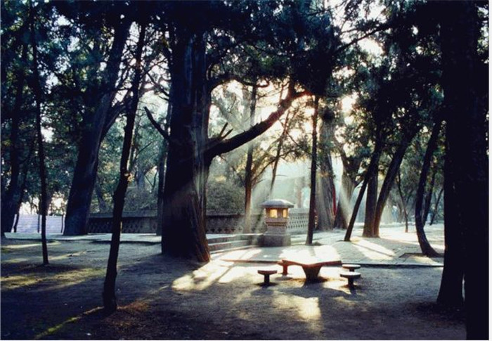 “陵寝以风水为重,荫护以树木为先”,在黄帝陵这片方圆203.92公顷的土地上,竟拥有古柏十万余株,它们的年龄,8.6万余株在百岁以上,3万余株均在千岁以上,苍翠茂盛,正当壮年,虬枝掩映,颇为壮观。